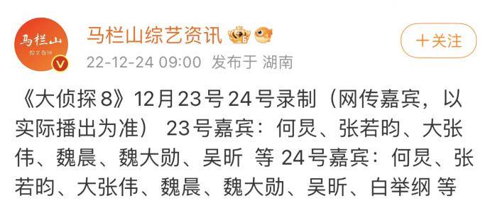 最后,《明侦8》第三次录制已经结束,看得出为了保障收看体验,节目组在极力邀请老玩家回归的同时,也在不断挖掘合适的新玩家加入,你们期待吗?#明星大侦探8#