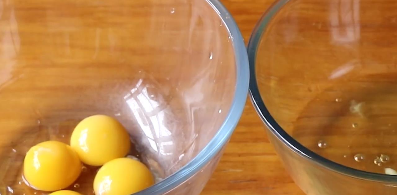 1、准备两个干净的锅,无油无水。四个鸡蛋,蛋黄和蛋清分开。