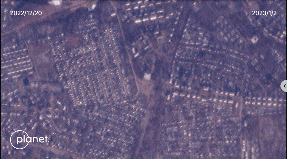 据环球网援引英国《卫报》3日报道,美国卫星成像公司“Planet Labs”当地时间2日发布了分别于去年12月20日、今年1月2日拍摄的两张顿涅茨克马克耶夫卡的卫星图像,对比显示了该地区在受到乌克兰袭击前后的状态。